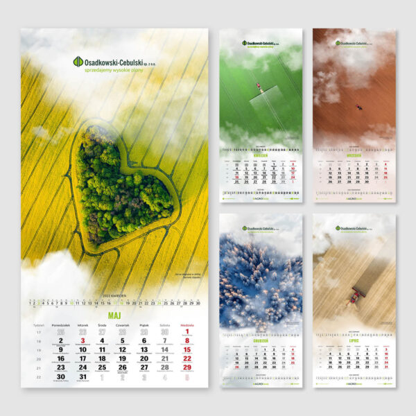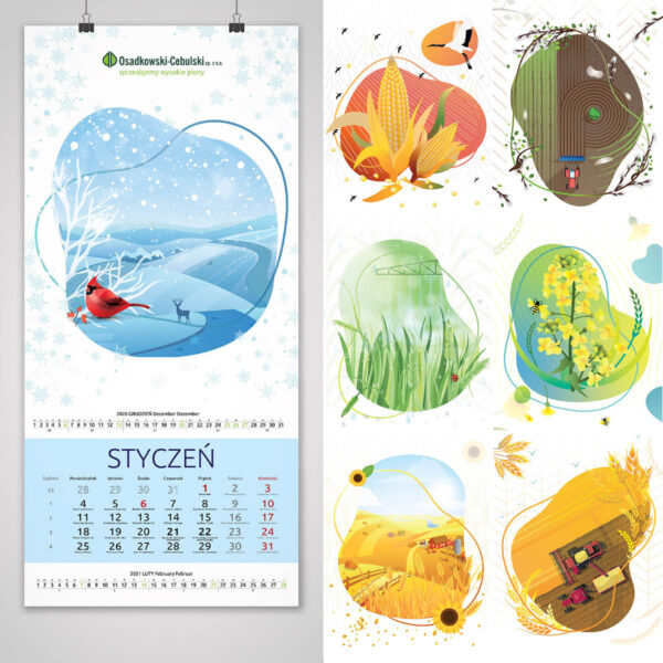 Wykonujemy indywidualne i personalizowane kalendarze ścienne, książkowe, biurkowe oraz planery. Naszą specjalizacją są indywidualne, wysokiej jakości projekty graficzne, ilustracje oraz indywidualne rozwiązania. Oferujemy druk oraz wiele efektownych uszlachetnień m.in foliowanie, lakiery wybiórcze, tłoczenia, sztancowanie, kolory metalizowane, druk 3d oraz metalic 3d. Projektujemy indywidualne kalendaria.